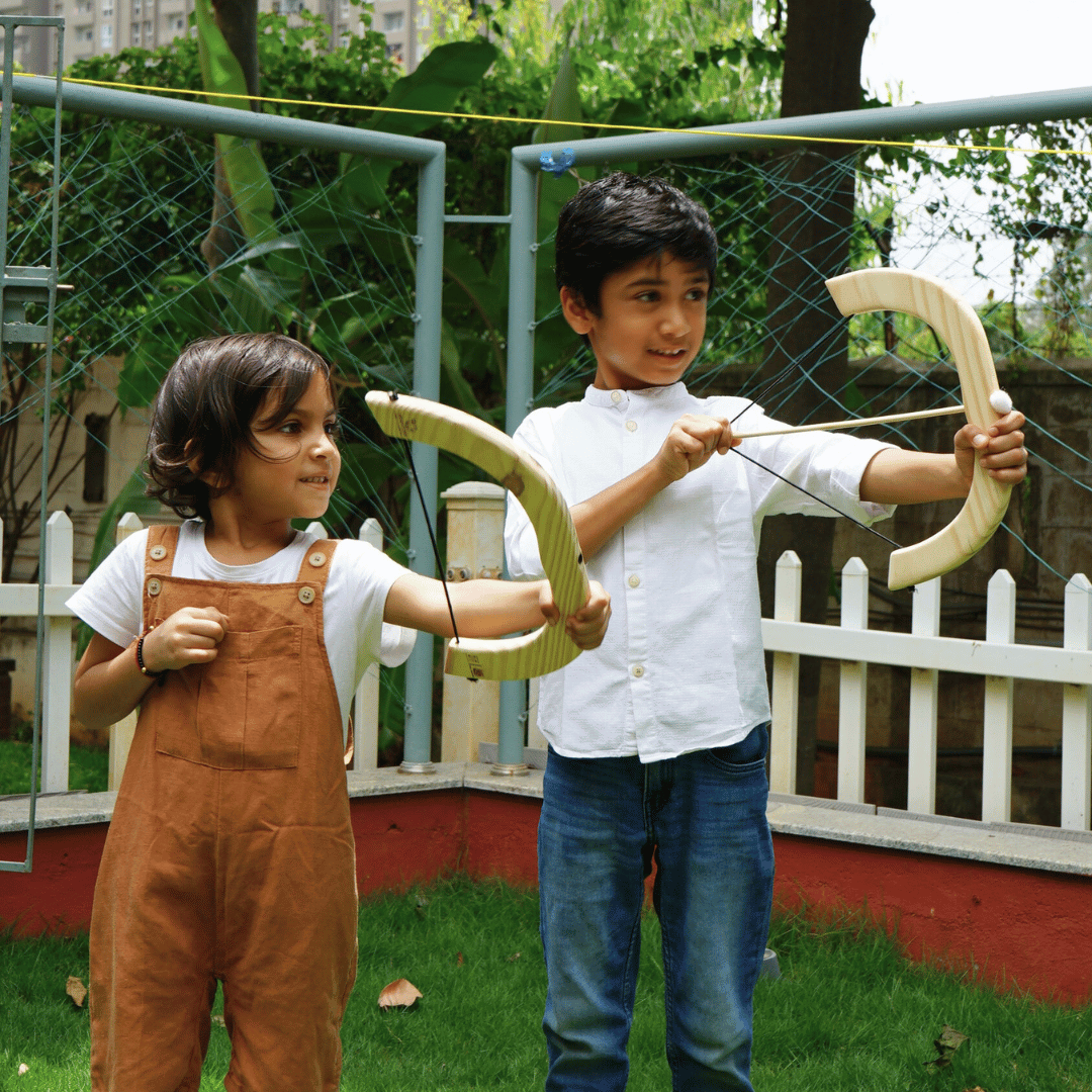 Handmade Wooden Bow and Arrow Set with Pom-Pom Arrows – Eco-Friendly Outdoor Archery Toy for Kids