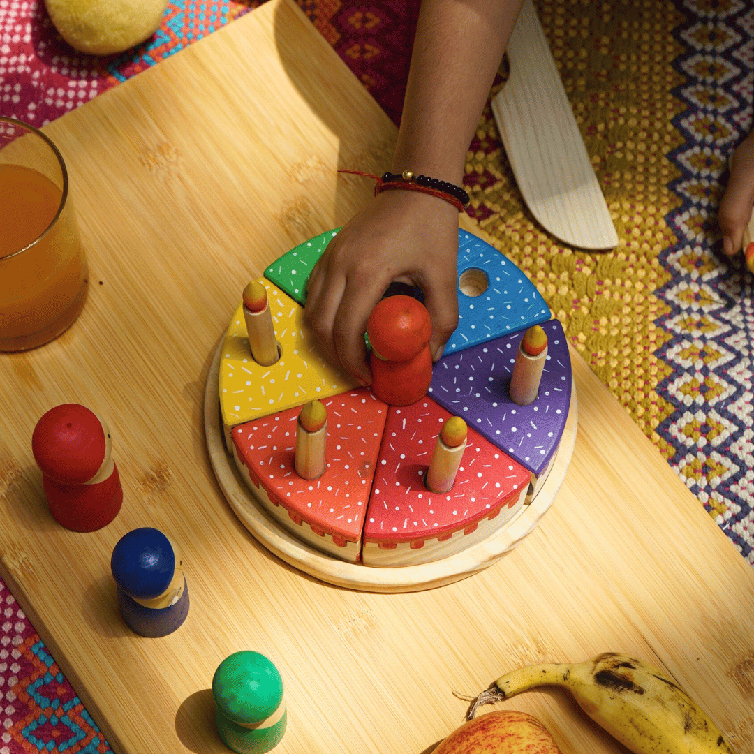 Wooden Rainbow Fruit Cake Toy with Candles | Montessori Educational Pretend Play Cake