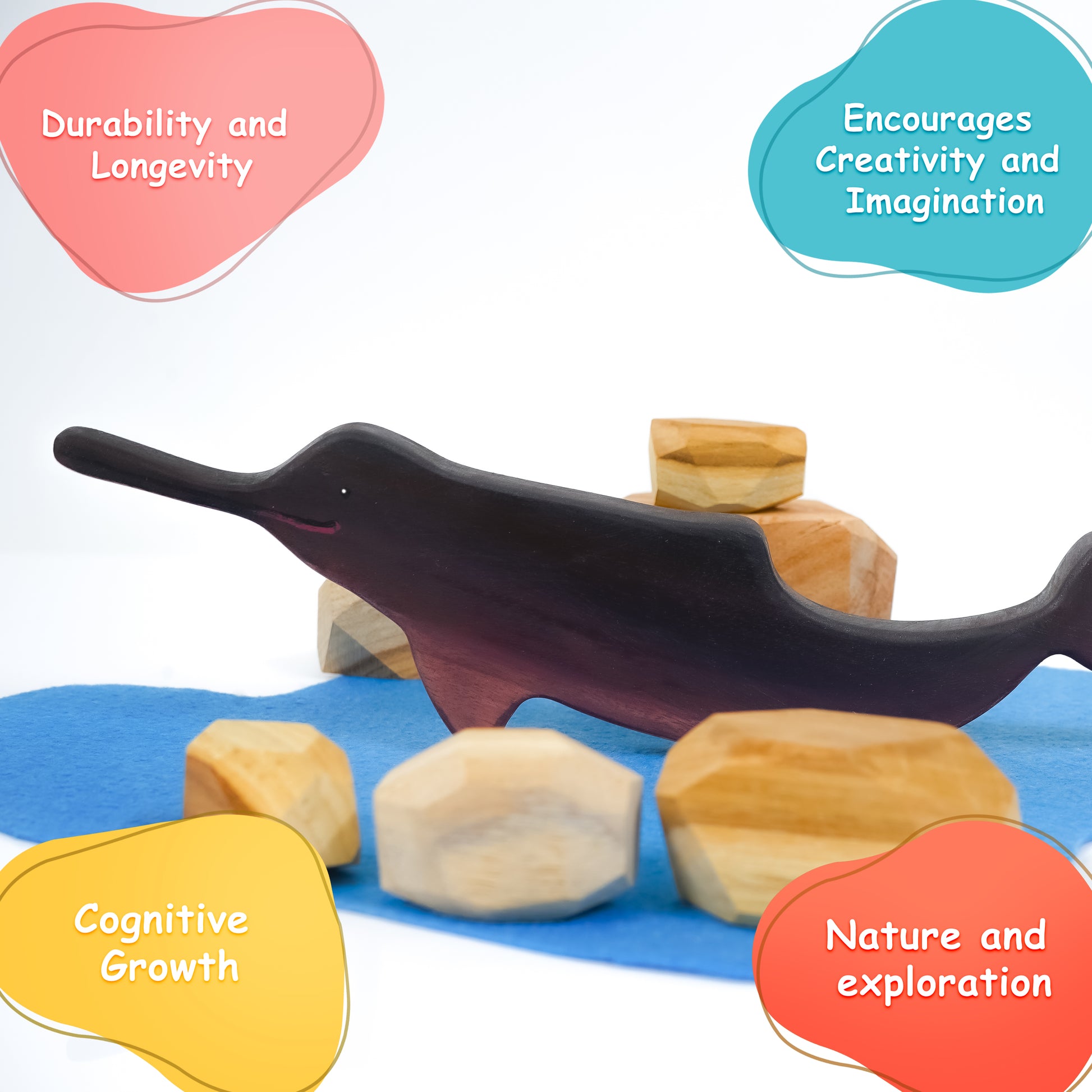 Dolphin Wooden Toy – Handcrafted Freshwater Dolphin Figurine