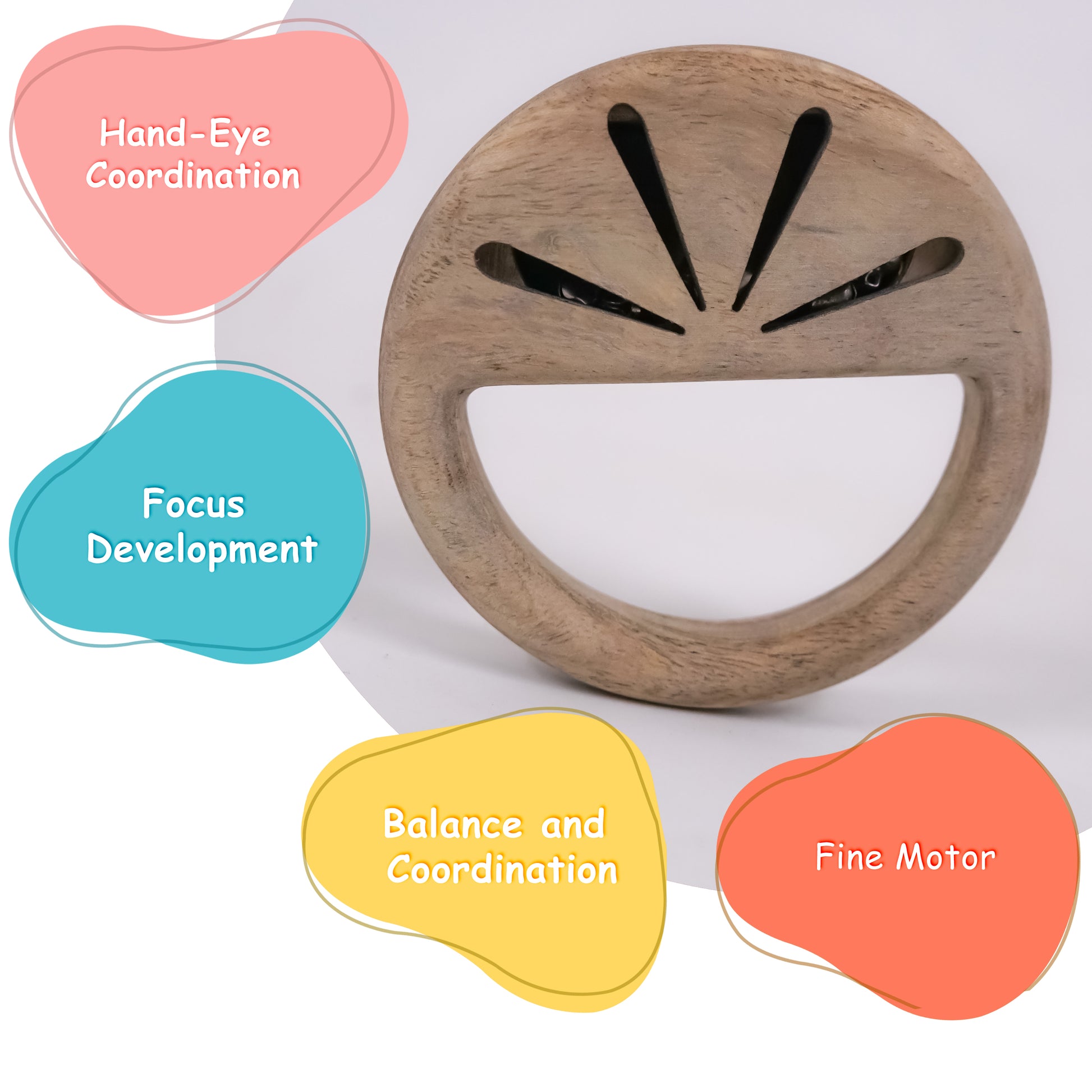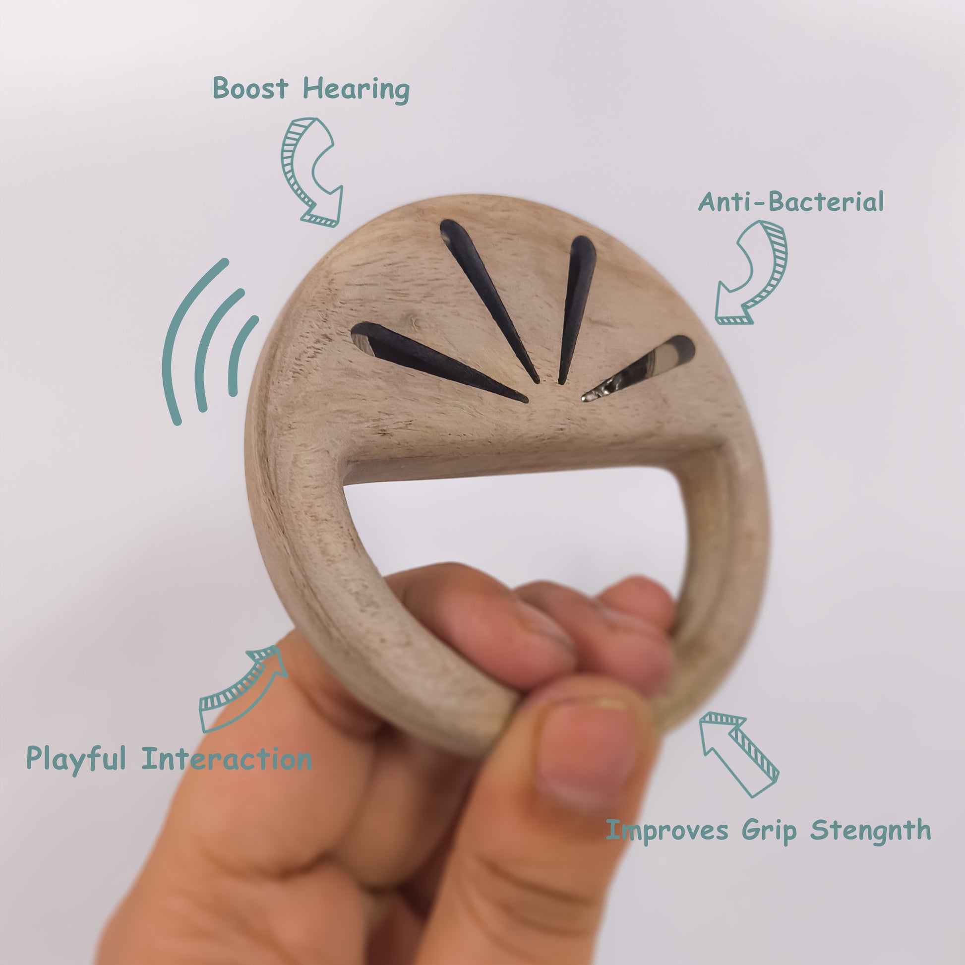 Made from anti-bacterial neem wood, this infant fine motor toy is safe for teething and everyday play. As babies shake the rattle, the gentle sound provides an auditory stimulation toy experience, capturing attention and sparking curiosity. Lightweight and ergonomically designed, it fits perfectly in little hands, allowing babies to strengthen grip and engage in interactive play.