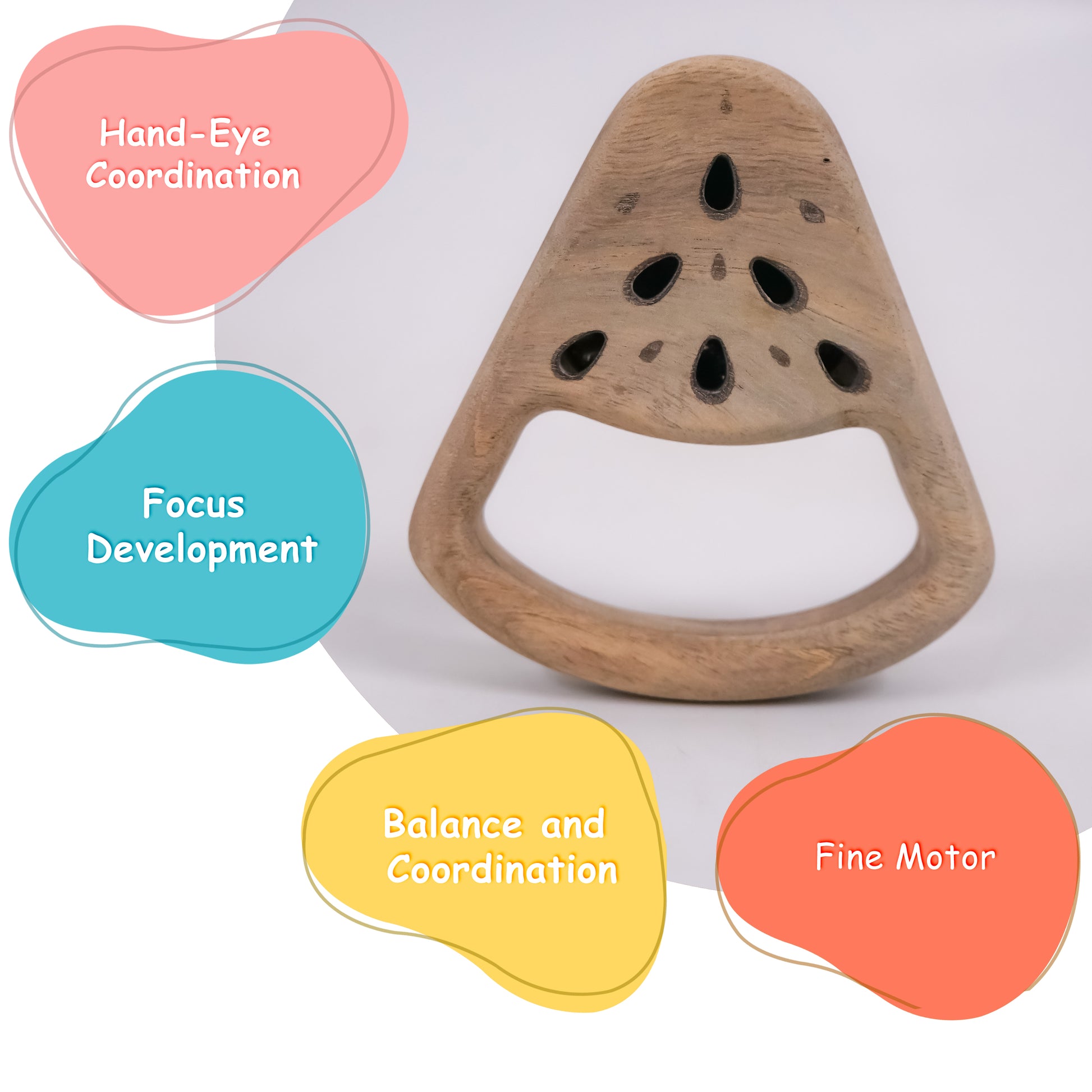 The Watermelon Rattler – Neem Wood Baby Toy brings fun, learning, and safe play together in one adorable package. Handcrafted from 100% natural neem wood, this watermelon wood rattler is designed to engage infants while supporting their growth and development. Its playful watermelon shape and gentle rattling sound make it a perfect infant sensory toy, sparking curiosity and exploration.
