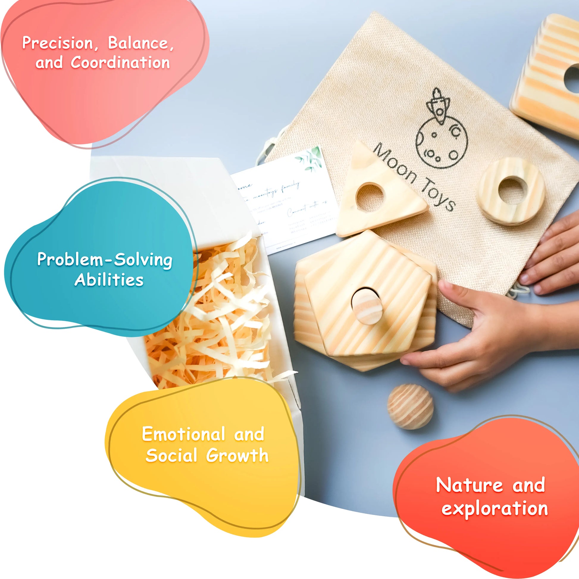Stacker Toys is a fantastic educational toy that introduces basic geometric shapes in a fun and interactive way. The smooth, tactile wooden surfaces support sensory exploration and provide a safe play experience for little ones.