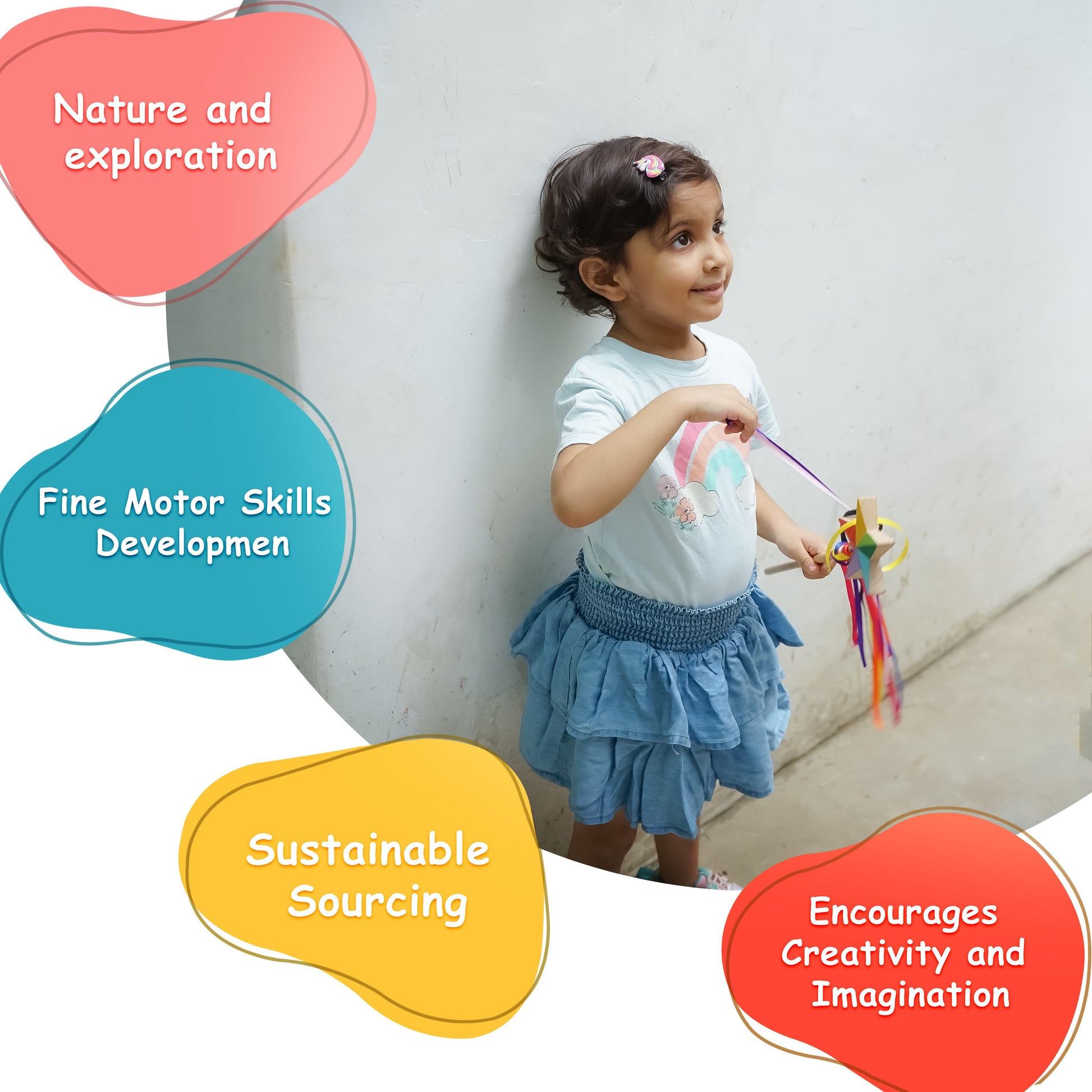 Crafted from non-toxic wooden wand India, it ensures safe play without compromising on durability. The ribbons add a playful visual and tactile element, making this fine motor Montessori toy a perfect blend of fun and learning. From birthday parties to daily imaginative play, this imaginative play wand is a charming gift that children will love to use again and again.