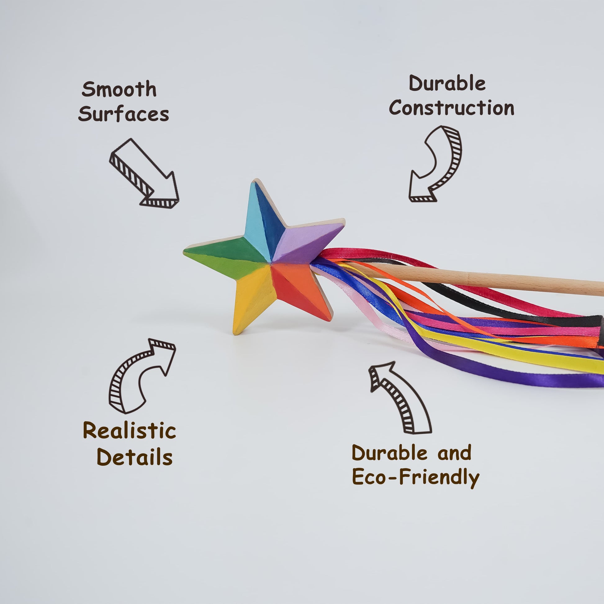 Bring a touch of magic to playtime with our beautifully handcrafted wooden star wand. Thoughtfully designed with Montessori principles, this Montessori star wand is more than just a toy – it’s a tool for creativity, sensory growth, and joyful movement. The natural wooden handle paired with soft, colorful ribbons makes it a delightful ribbon wand toy that sparks endless pretend-play adventures.